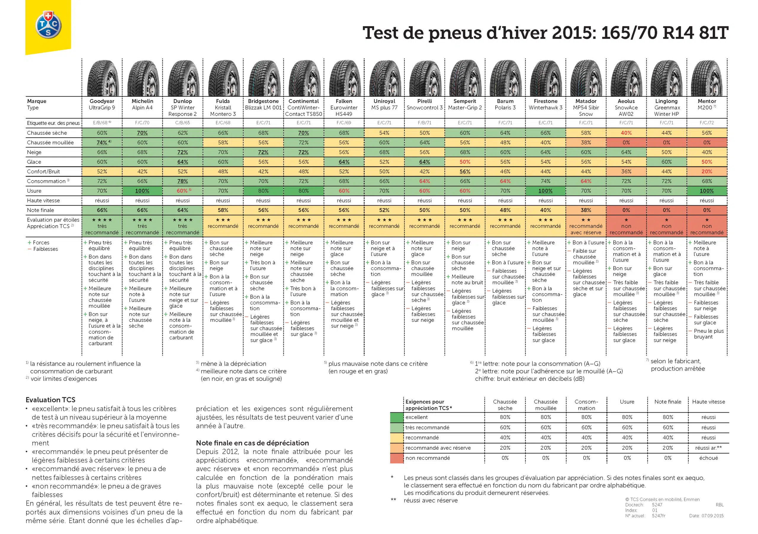 Un excellent pneu qui performe aussi bien sur route mouillée que sur neige : excellent contrôle donnant un véritable sentiment de sécurité. Il s’agit d’un pneu assez cher, mais dont le prix est justifié par sa qualité.